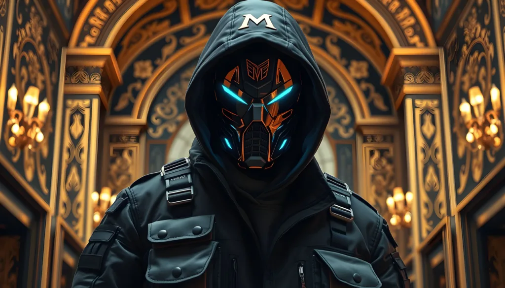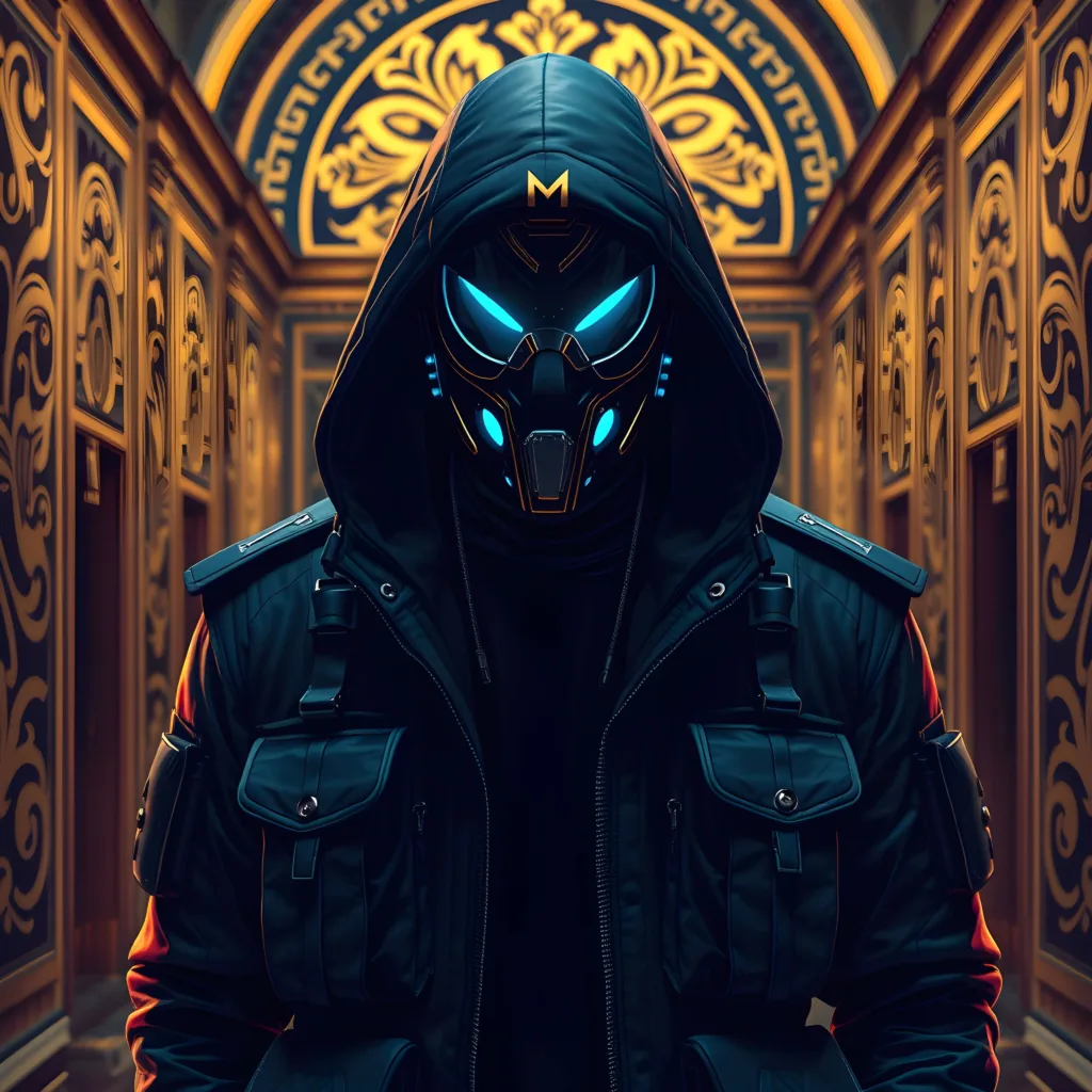 Logo officiel Monark streetwear premium : grande lettre M dorée avec motifs géométriques art déco et typographie dorée sur fond noir.